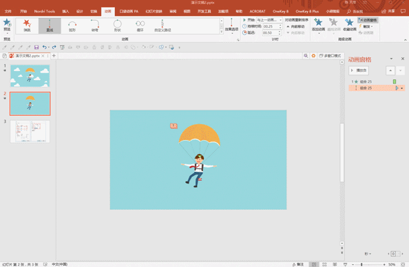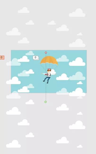 由图可以看出,首先是降落伞得先飞入页面,飞到页面中时,那一上一下的浮动效果其实是有【直线路径】动画实现的。