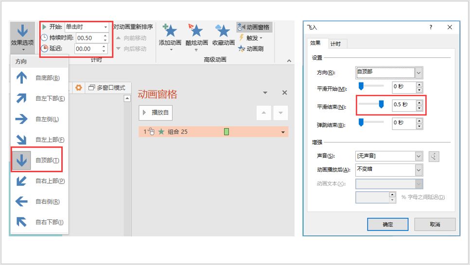 先给降落伞添加【飞入】,并做如下设置:
