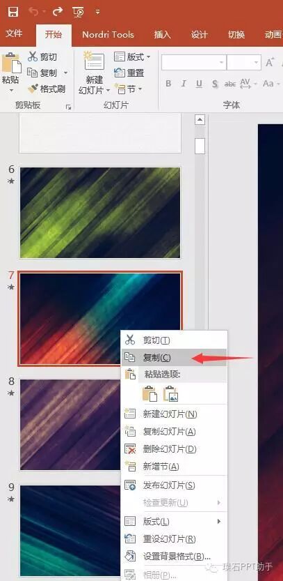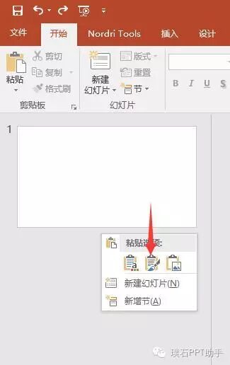 第二步:到你的幻灯片中,在预览窗口右键,选择保留源格式