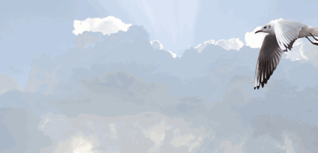 先看看小鸟扇动翅膀飞翔的PPT成品:
