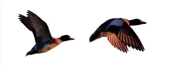从素材中抠出两只小鸟,小鸟的翅膀一定要一上一下。大家也可以利用PPT中图形来制作两只飞翔小鸟或者蝴蝶等,如下图所示: