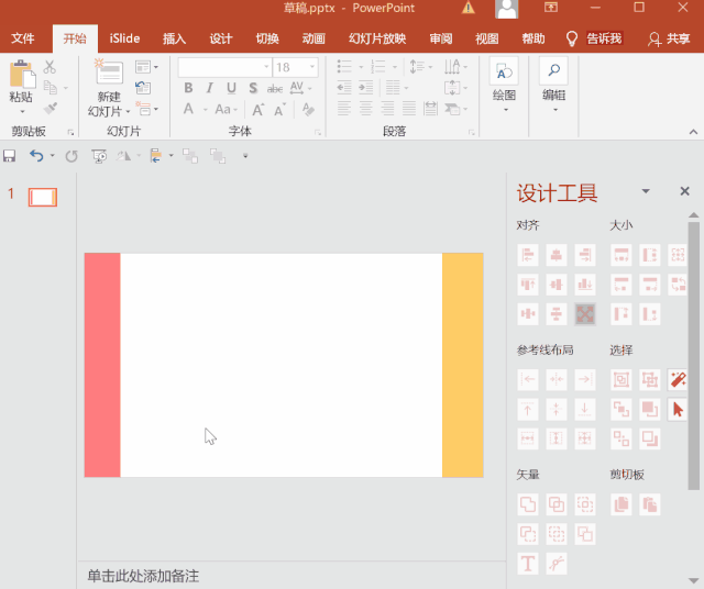 ❷ 选中两个矩形,利用 iSlide,点击「动画」,选择「补间动画」,在对话框里设置补间数量为 100(当然也可以自由发挥),再点击【应用】: