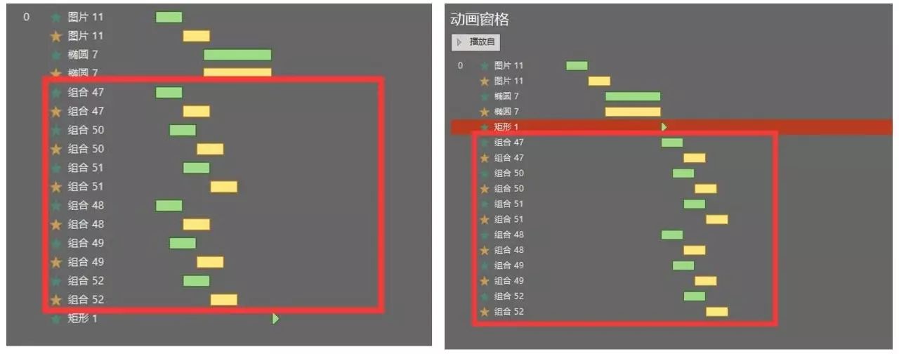 ②、动画刷的使用:使用方法类似格式刷,可将不同对象的动画进行复制,单击一次复制一次,双击是连续复制。