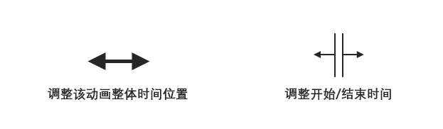 ③、时间轴的调整:快速使用鼠标调整时间轴,一方面快速调整起止时间,一方面是调整整体动画的时间