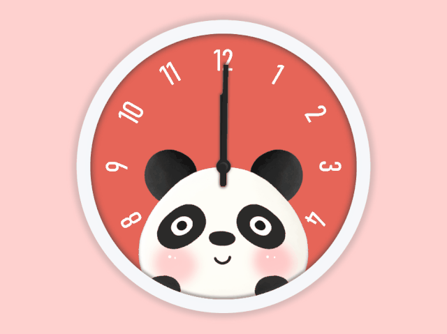时钟共分为五层,自下而上分别是:白色边框、红色内底、整点数字、熊猫图案、指针组合。