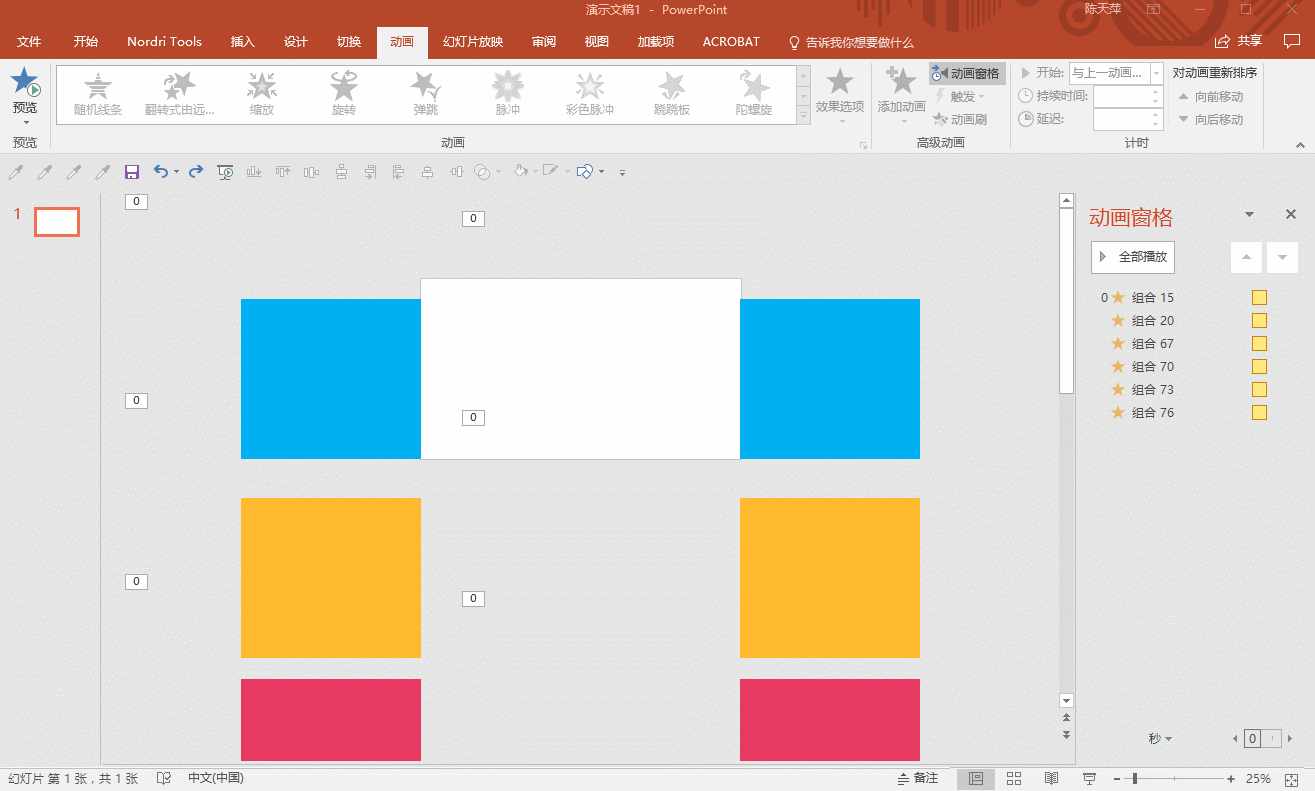 从这个动图中我们可以得知,这并不是我们想要的,可见直接给两个矩形加【陀螺旋】动画是不行的。