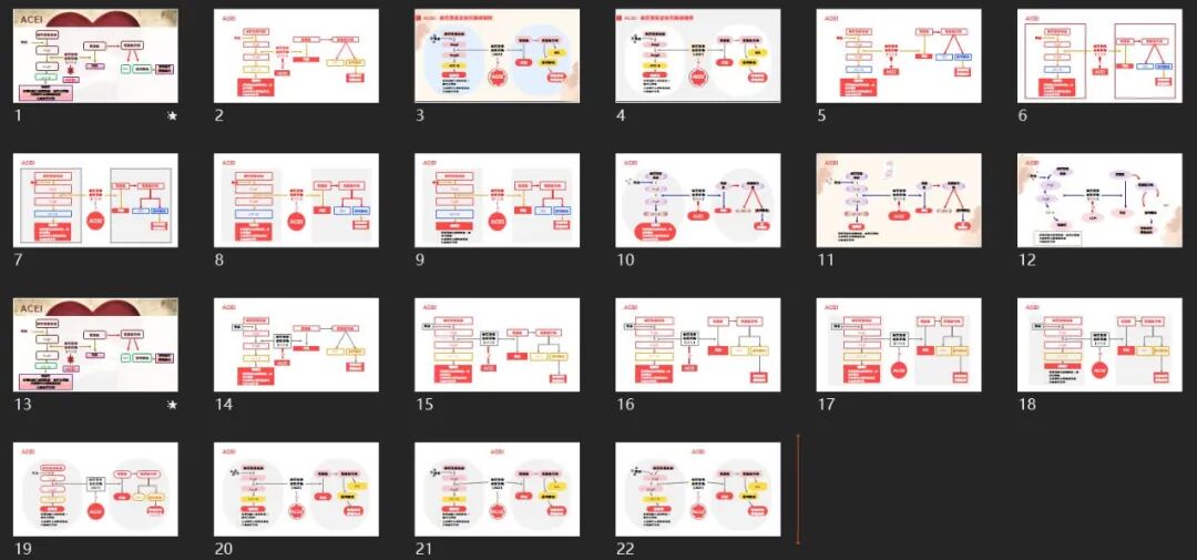 浅灰色的色块,将零散的元素整合起来了。同时让画面中间的ACEI部分更突出,呼应了标题,是不是很妙呢?