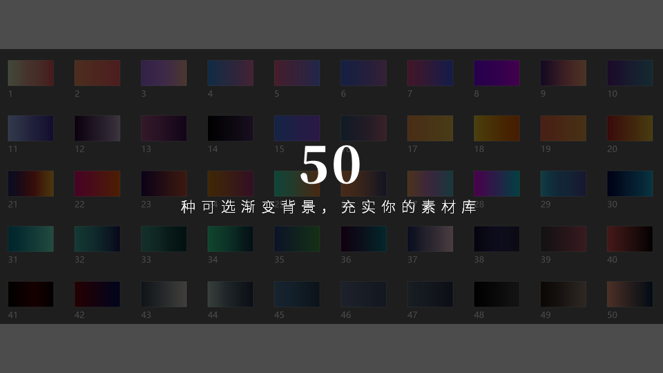 今天和大家分享50张渐变的PPT背景,都是自己选的颜色,其中一些经常被拿来做PPT的背景。