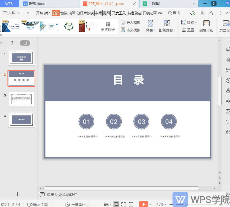 WPS 本身自带许多专业的文档配色设计,我们可以一键美化文档、表格、幻灯片的主题配色。
