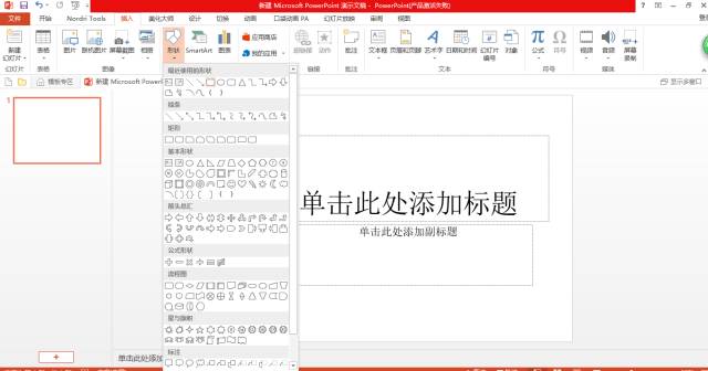 在插入选项卡>形状中,选取矩形,并将整张幻灯片都覆盖为矩形。