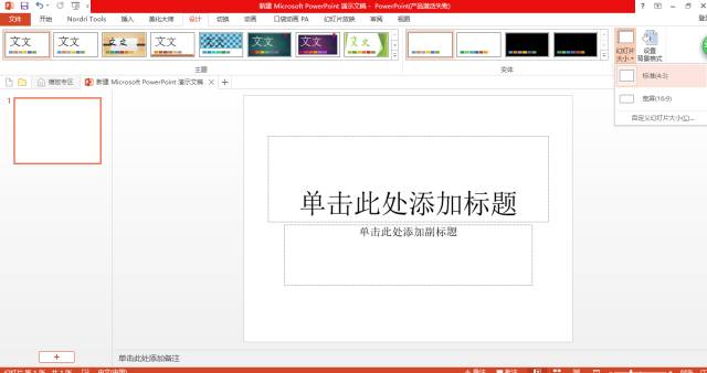 在设计选项卡>幻灯片大小中,将幻灯片比例调整为4:3大小。