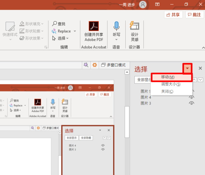 随着PPT的版本的不断迭代,有着越来越多的功能加入。随便盘一下,一个开始选项卡下面就有着大大小小着近百种功能,PPT中一共有超过12个选项卡,简单估摸一下,功能就已经超过了1000种。除非你是PPT高手,否则要是真的想一下子记住这么多的功能还真不是一件容易的事情。而解决这个问题的方法也很简单,只要把握住这2个小技巧:在OFFICE 2016之后的版本中,界面最顶上加入了一个搜索框,可以用来搜索文档中的内容。但其实很多小伙伴不知道的是,其实它可以用来搜索「功能」。比如我直接输入搜索「合并形状」功能,就能瞬间找到,并且直接运用。如果你找不到功能所在的位置,可以直接在搜索框中搜索,就可以马上找到了。如果你没有找到这个功能的话,考虑是使用的版本太早了,或者是WPS,或者是盗…….选项卡的设计虽然让界面很清爽和精简,但是我们在查找功能的时候就变成了——我不但需要记住我想要的功能在哪,我还需要知道它在哪个选项卡里面。解决这个问题也很简单,这个时候我们就要利用到——快速访问工具栏。快速访问工具栏可以一直固定在操作界面的正上方,不受选项卡的影响。因此,我们可以将日常中最最经常用的功能,右键添加到快速访问工具栏中。这样子,就算我们只用快速访问工具栏,那么也可以完成80%的PPT设计工作。在这里我为大家整理了最最最常用的功能列表,大家可以保存起来,将这些功能添加到快速访问工具栏里面。其实快速访问工具栏是支持导出和导入的,我把珞珈老师的快速访问工具栏导出了出来,大家可以下载之后一键导入。在PPT中,如果我们想要选择一个元素,除了点击之外,只能框选它。但是当页面元素太多的时候,我们就很难选中我们想要的元素。我们可以通过【开始】选项卡 >> 【选择】中找到【选择窗格】并打开。这个时候,你会发现PPT上面的所有元素密密麻麻的都罗列在了【选择窗格】中。这个时候你只要在选择窗格中点击所需要的元素,就能够直接选中了。甚至,为了方便查找,你也可以随时选择右边的眼睛的开合,来隐藏显示这个元素。凡是用鼠标和键盘操作的软件,你会发现里面一定有着多让你不断点击键盘和鼠标,直到你手抽筋的操作。虽然不能完全避免,但是我们完全可以减少一些重复性操作,这时候就要用到——在PPT中,每当你进行一个操作的时候,右边就会展开一个窗格,当你进行比较多的操作时,就会发现,操作页面已经被多个窗格挡住,而无法操作了。关闭之后这个窗格之后,一旦你又要做动画了,这个时候又需要打开【动画窗格】…….一场操作下来,你会发现右边的窗格其实一直都在开开合合,左左右右......在这里我可以以一个7年PPT设计师的身份,告诉你,PPT自带的界面其实并不是一个非常高效的操作界面。实际上在我使用PPT之前,我会将PPT界面调整到只有全屏的80%面积大小,在右侧和底部预留10%的位置,用来放上我常用的窗格。你可以在常用的窗格中点击右上角的【下三角形】符号,接着选择【移动】。这个时候,你可以将常用窗格调整到界面中富裕的位置,并且随意调整窗格面积。