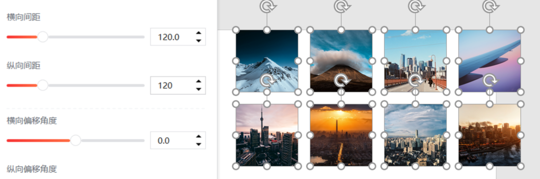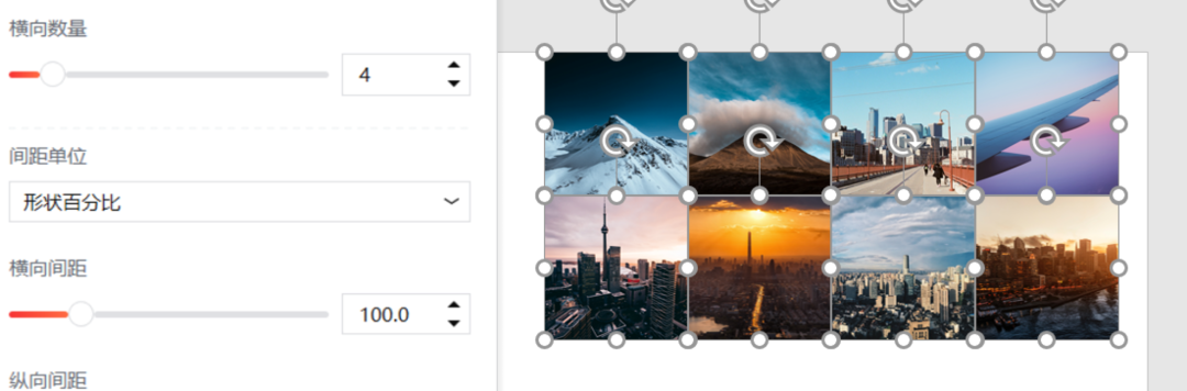 但是我们也希望图片之间有些间距,因此,我们可以适当调整【横向间距】与【竖向间距】为120。