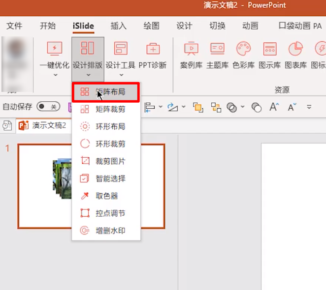 设置图片的高度和宽度都为200,接着点击裁剪,所有图片就能瞬间裁剪成目标大小。在有些时候,我们需要把PPT上面的元素做非常规整的排列,比如展示合作方logo,展示我们公司产品图,领导照片的时候。这个时候如果用PPT中的排列工具,必不可少的需要不断的用鼠标和键盘来调整细节,并且一张一张的,效率会很低下。这个时候,可以使用islide插件中的【矩阵排列】功能来快速完成。假如我们需要排列8张图片,我们可以将图片排列成一个4x2的矩阵。那我们首先选择所有图片,接着点击iSlide选项卡中【设计排版】中的【矩阵排列】功能。