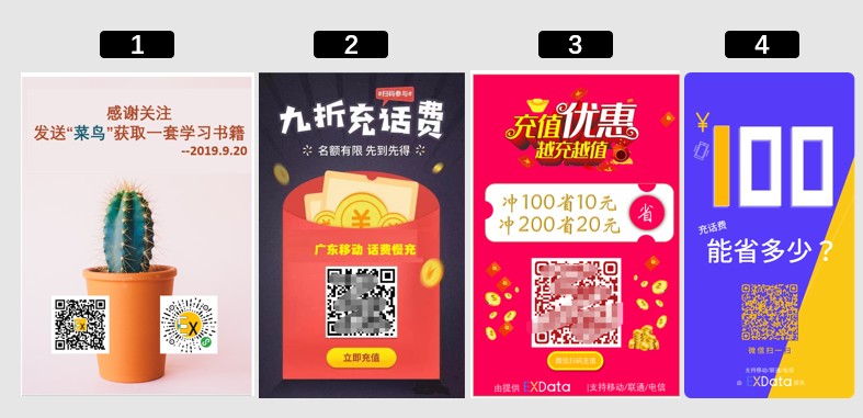 第一张海报,是拿来主义,拿了张底图,放上二维码和文字,既没考虑对称,也没考虑颜色的匹配。