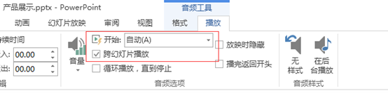 插入背景音乐之后,在“播放”选项卡中按照红框处来设置同样的参数,这样在播放幻灯片的时候会一直播放背景音乐。