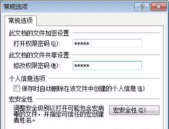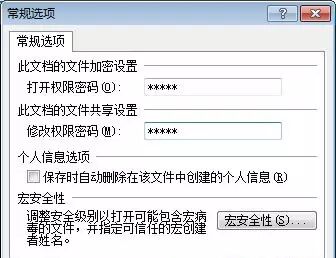 下面再介绍一种加密方式“修改权限密码”,单击“Office按钮”选择“另存为”,然后单击保存旁边的“工具”按钮,在弹出的下拉列表中选择“常规选项”,在弹出的“常规选项”窗口中也有两种设置密码的方式;(如下图)