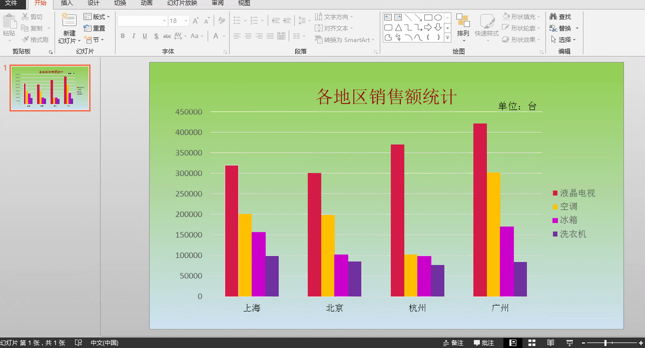二、为图表设置完动画效果后,这个时候整个表是动态的,如果我们想要让图表按类别出现,同样可以设置一下效果选项:在动画选项卡下面选择动画组,单击动画组中的效果选项,在效果选项的下拉列表中选择按类别填充。