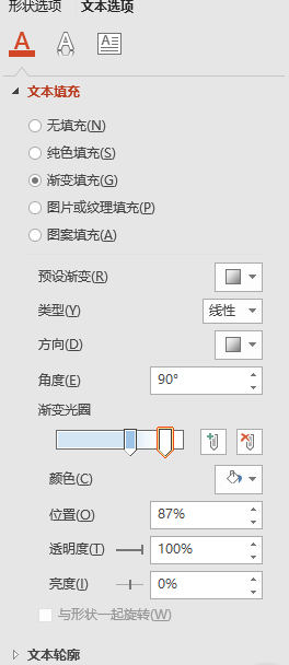 每个颜色也有对应的角度、透明度、亮度等参数,这就是PPT的所有渐变效果。可以通过改变参数来实现到自己需要的效果。