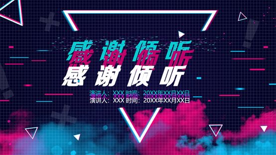 三个颜色不同版式相同的文字交错叠加,在素材网上下载故障风素材添加增加画面的饱满,吸取抖音的主要色彩完成设计。