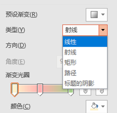 渐变效果分别分为:线性,射线,矩形,路径以及标题的阴影。