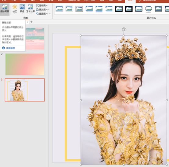首先是这种基础版,人物的穿插效果,插入图片,进行删除背景等操作【注意可用画笔保留不需要删除的部分】