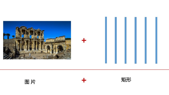首先,我们将矩形色块放在图片上面,如下图所示: