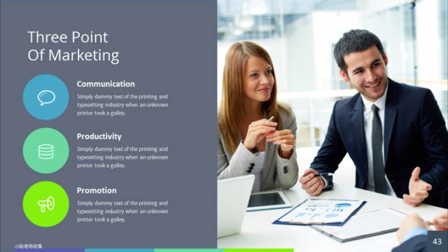 比如:下方的2张幻灯片,即使用了该方法。在图片左侧或右侧添加一个渐变蒙版,并添加文字,这样一来文字清晰可见,图片信息也很突出。