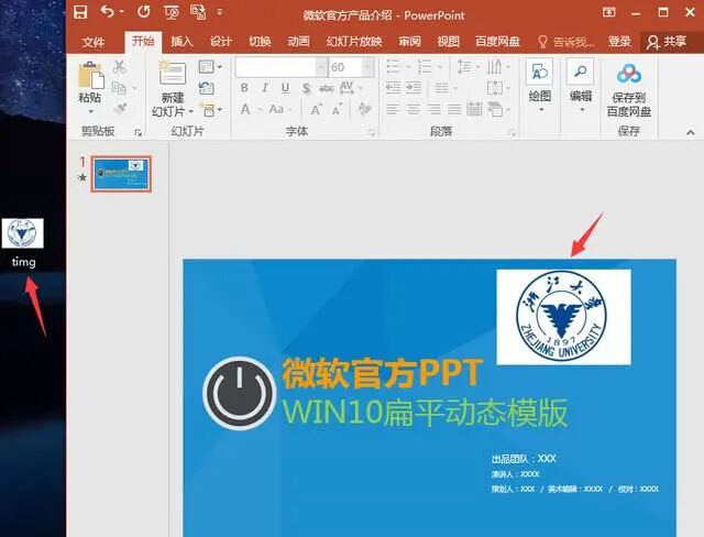 メ大家请看范例图片,我们在蓝色背景图的PPT插图图片LOGO,LOGO自带白色背景图,这样直接插入非常难看。メ