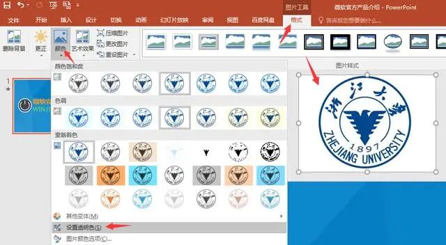 メ我们点选图片——格式——颜色——设置透明色。メ