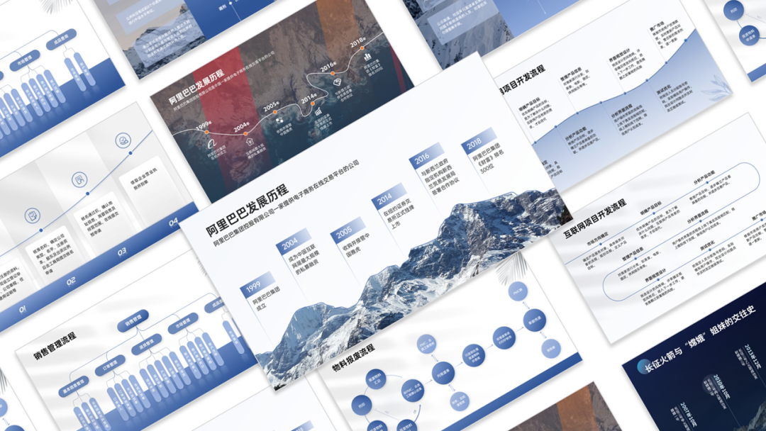 单线流程在PPT中多以时间轴的形式呈现,我们可以用以下三种排版形式来美化它们:
