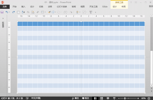先看一下效果图,不得不说,这个效果有点儿丑…… 出于探索 PPT 基础操作的目的,我们还是要试着模仿一下这页幻灯片的。 - 操作步骤 - 1. 在空白幻灯片中插入 1 个 25 列 × 15 行的表格,并将表格大小调整至刚好铺满本页幻灯片。 2. 在“表格工具 - 设计”上下文选项卡中进行如下设置: 为表格添加全部边框线。 将表格的“底纹”设置成“纹理”,此处使用的是“再生纸”纹理效果。当然,也可以设置为其他颜色,或图片填充的样式。 “效果”设置为“单元格凹凸效果”中“棱台”分组下的“圆”即可。 完整的操作步骤见下图。