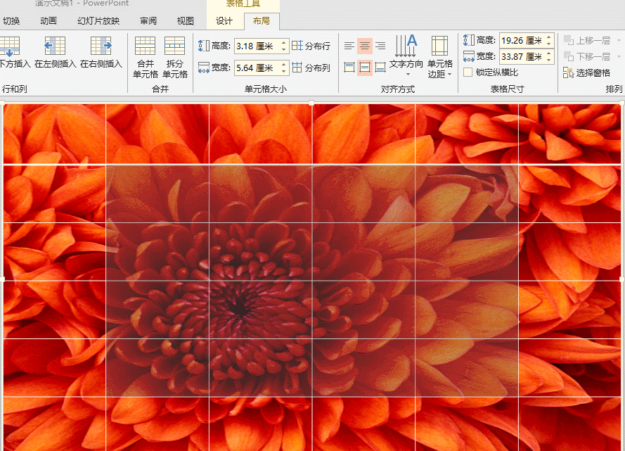 1、在ppt中插入一个表格,我们在这里选择6行6列的表格,调整一下表格的大小,使其充满整个表格。