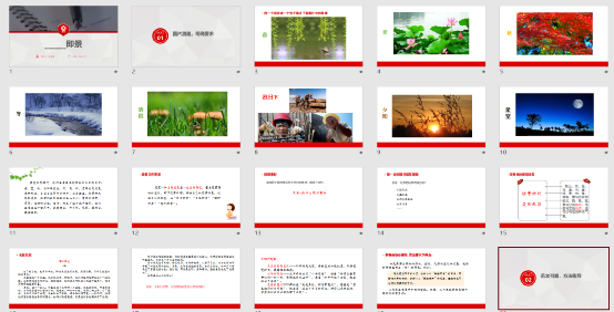 今天和大家分享一份习作课件的修改,大家通过缩略图可以发现,整个课件就是单纯的图文摆放,看起来清晰明了,但是缺乏一定的美感。