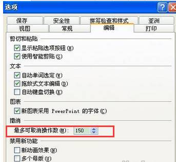 PPT中的“撤消”功能为文稿编辑提供了很大方便,但PPT默认的操作次数却只有20次。那怎样打破这个极限呢? (1)点击“工具-选项”; (2)再点击“编辑”,在“最多可取消操作数”中设置我们需要的次数就可以了。不过要注意,PPT撤消操作次数限制最多为150次。