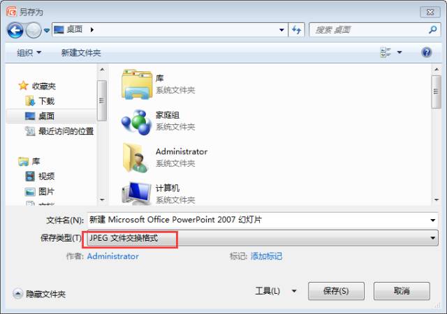 (1)打开要保存为图片的演示文稿,单击“文件-另存为”,将保存的文件类型选择为“jpeg文件交换格式”,单击“保存”按钮;