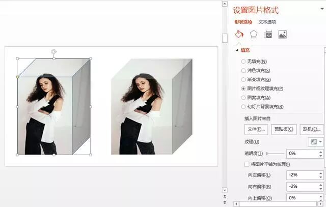 添加完成后,右键点击【设置形状格式】,选填充方式为【图片或纹理填充】,导入你的图片进入,然后把图片的边框设置为【无轮廓】即可。