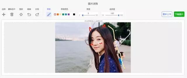 图片想要做一些简单的涂鸦?只要点击【图片涂鸦】后进入,然后选择画笔的颜色、宽度和透明度后,直接在图上自由发挥就行,同样绘制后我们可以直接【下载图片】哈~
