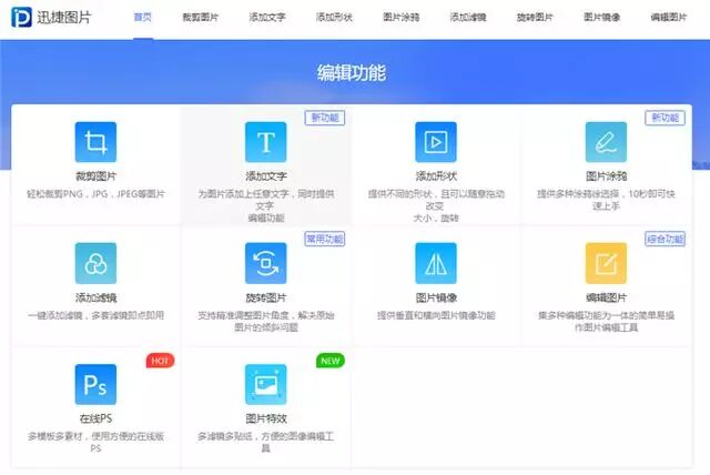 当然,PPT有些功能可能还无法满足我们的要求,如果你还想做一些特别的图片处理的话,这里推荐一个办公网站——迅捷图片在线网站,这是一个专门做图片处理的网站,可以在这里一次性完成裁剪、文字、旋转、涂鸦、滤镜等操作。