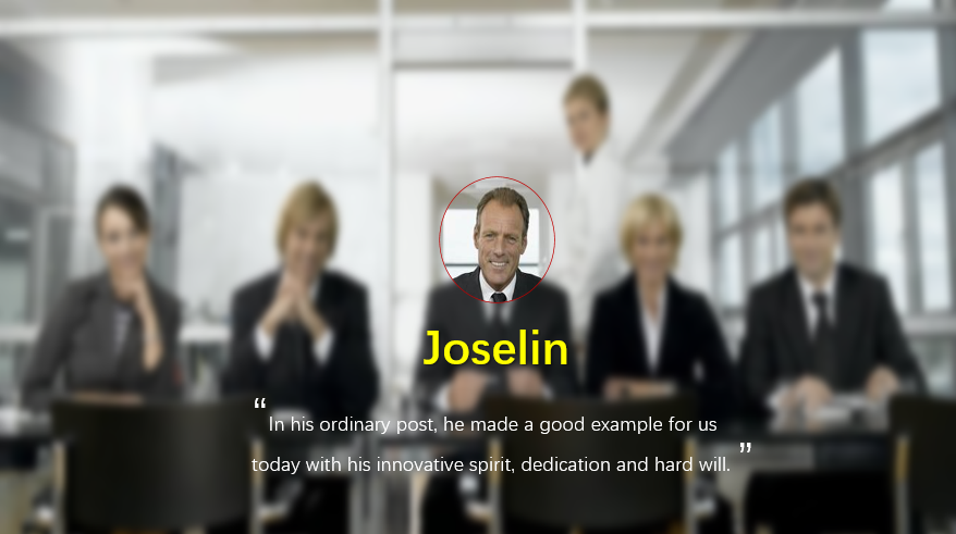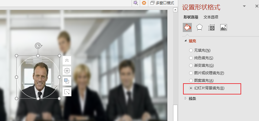 设计方法类似,上述步骤的1,2, 3都是一致的。 然后在页面里插入一个圆形 设置幻灯片背景填充 添加上文字,完成! 我们来添加一点难度,上面只是突出显示一个人头,如果是要突出整个人物呢?这个时候就不能简单的插入一个圆形就可以解决的