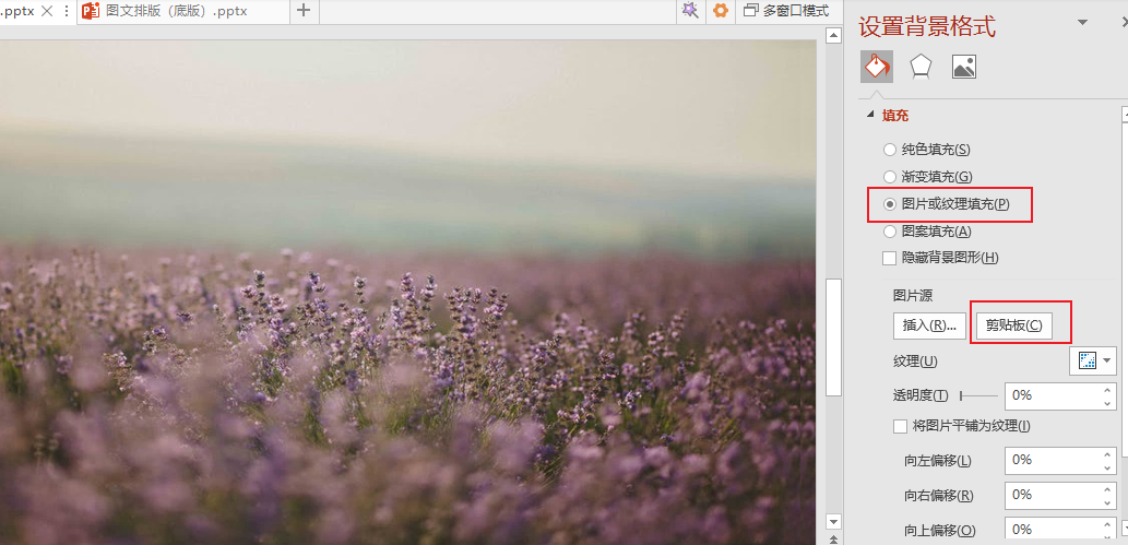 2. Ctrl+C复制这张图片, 右键-设置背景格式,选择“图片或纹理填充”,图片源来自剪贴板