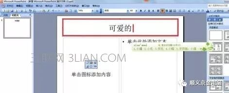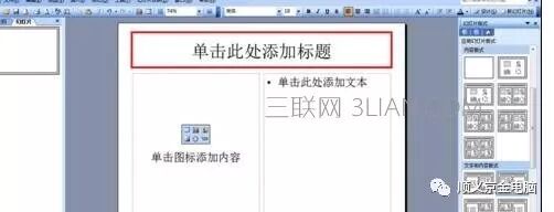 鼠标单击选中“单击此处添加标题”,如下图