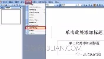 单击“格式”,在下拉菜单中选择“幻灯片版式”,如下图