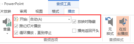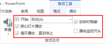 在“播放”选项卡的“音频选项”组中按照需要进行相应的设置。
