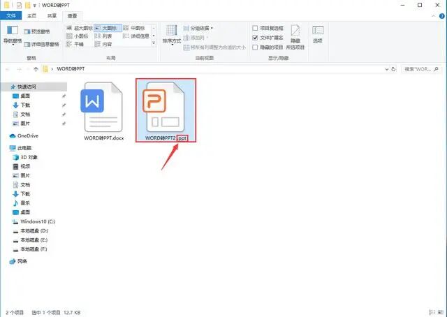 メ最后,我们保存该WORD文档,复制粘贴一个新的WORD文档,然后将其后缀名从【docx】修改为【ppt】。メ