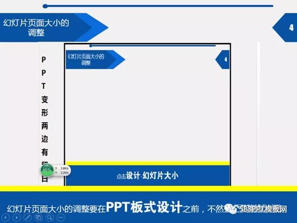 4.幻灯片页面大小的调整-幻灯片页面大小的调整要在PPT板式设计之前,不然整个页面就变形。