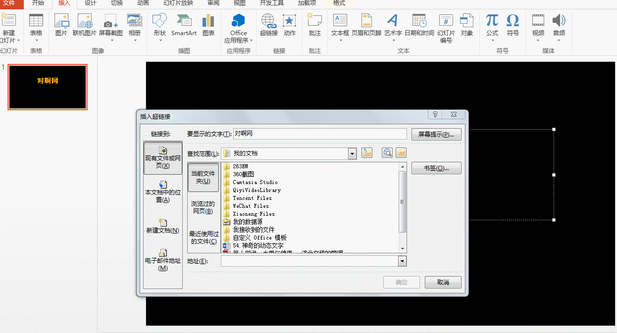 在ppt中插入网页链接,可以快速引用网页中的内容,增强PPT的实用性,那什么是超链接呢?在放映演示文稿的时候,点击设置好的对象就可以快速链接到网页当中。如效果图: