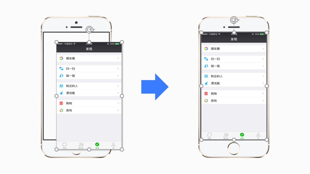下载完以后把图片素材插入到PPT里,接着右击你的样机图片,将其【置于顶层】,再把它放到丑图上方,这样图片看起来不就像是被装在屏幕里了吗?