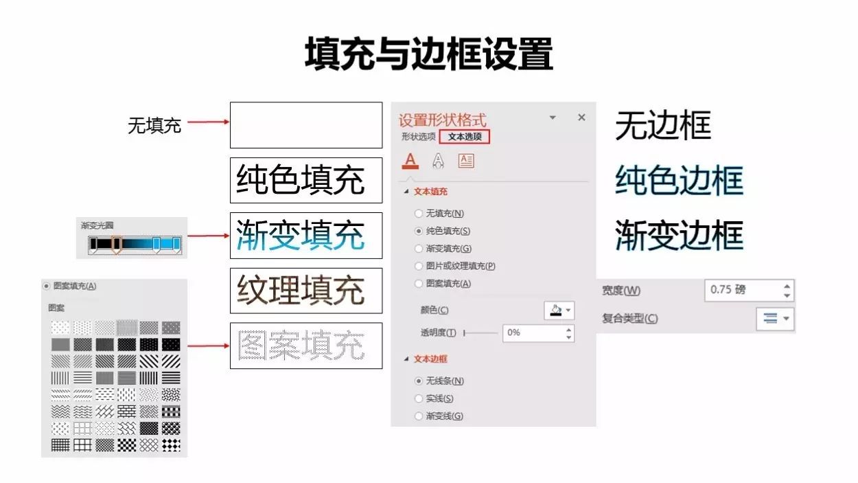 渐变填充方式有两种,一种是使用系统预设的渐变,另一种是自定义渐变。