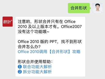 经常有人问,「为什么我的 PPT 里面找不到合并形状?」,请在秋叶PPT公众号后台回复关键词「合并形状」,了解详情~